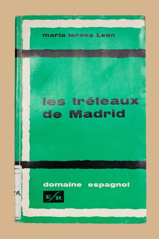 Titolo: Les tréteaux de Madrid : roman / María Teresa León; traduit de l'espagnol par Gisèle Ventajou. - Paris : Les editeurs français reunis, [1965]. - 375 p., [1] c. di tav. : ritr. ; 19 cm.