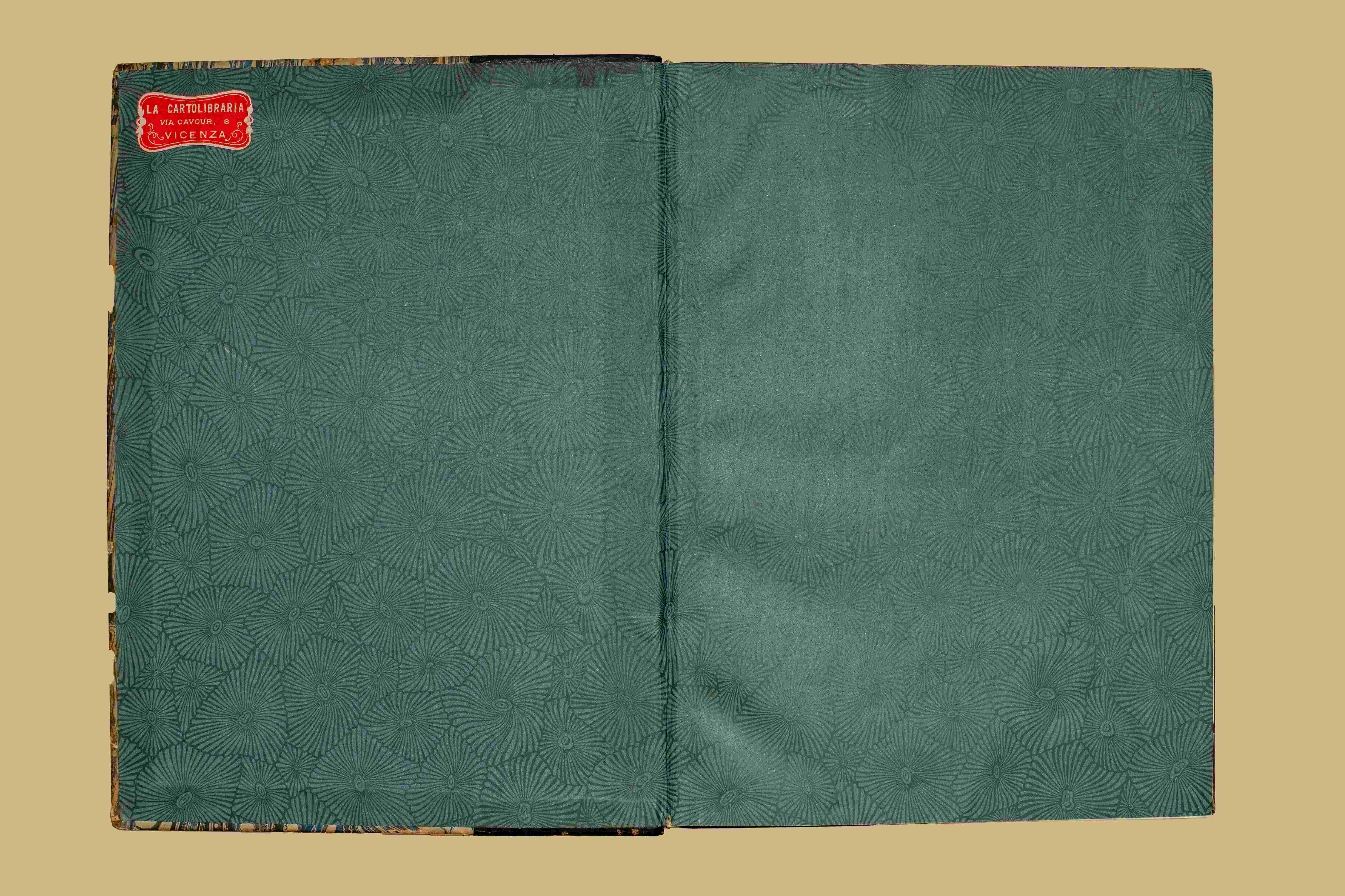 Note: Legatura in mezza pelle con dorso nero e piatti marmorizzati azzurri e grigi. All’interno del piatto ant. adesivo “La cartolibraria. Via Cavour. Vicenza”. Nel risguardo dedica ms. “Perché la gratitudine non può esser disgiunta dai ricordi e l’immagine gloriosa dall’affetto della terra natale. Famiglia Vallesella. Vicenza, 27 febbraio 1918”.