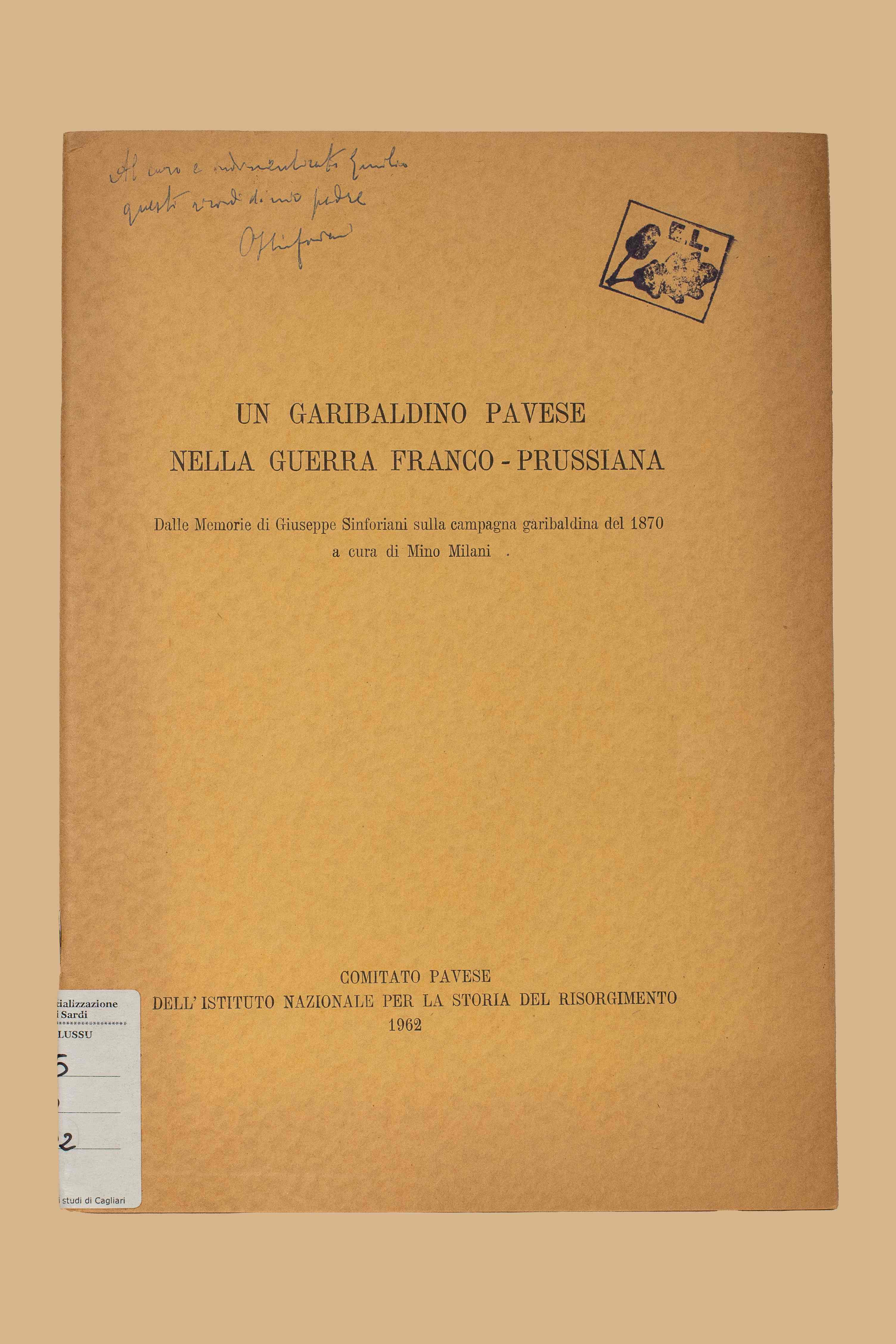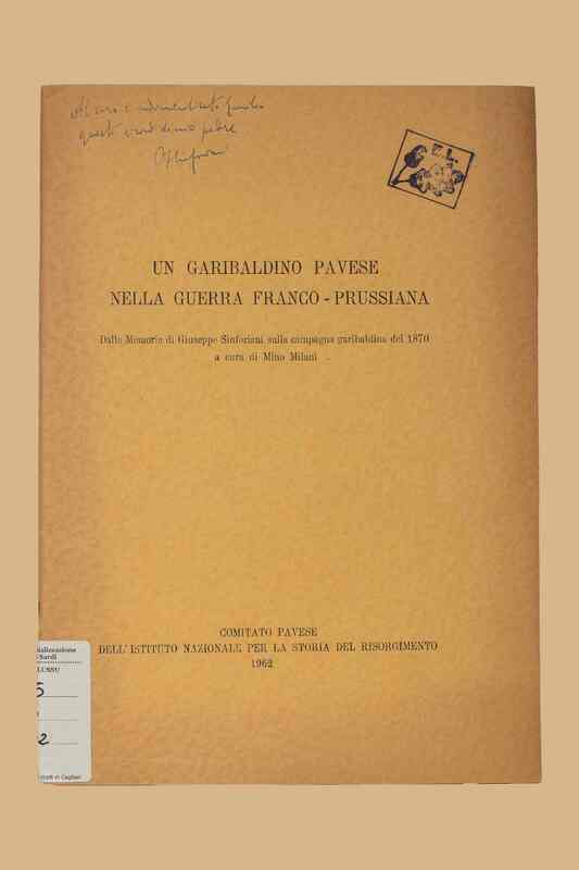 Titolo: Un garibaldino pavese nella guerra franco-prussiana : dalle memorie di Giuseppe Sinforiani sulla campagna garibaldina del 1870 / a cura di Mino Milani. - [Pavia] : Comitato pavese dell'Istituto nazionale per la storia del Risorgimento, 1962. - 23 p. ; 24 cm. - Estr. da: La provincia pavese, (ott.-nov. 1962).