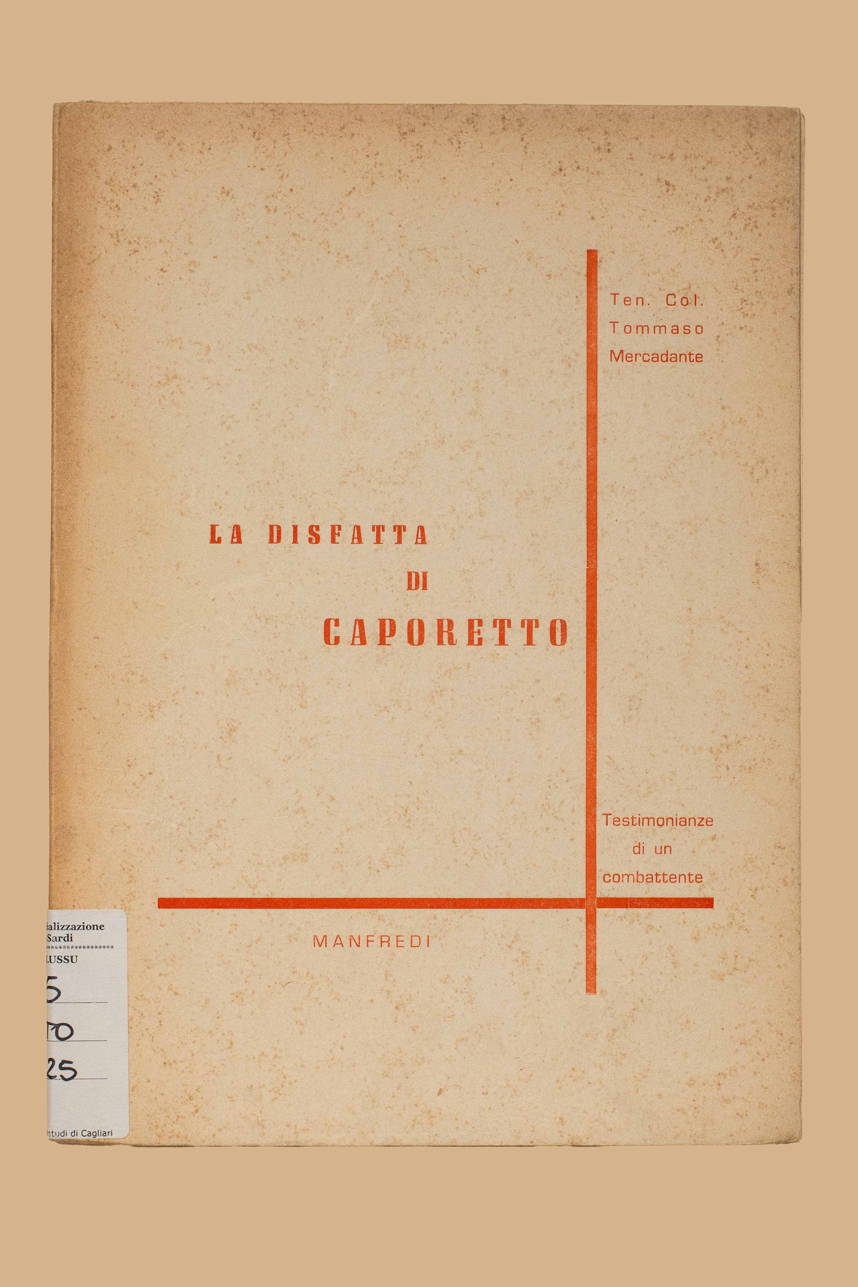 Titolo: La disfatta di Caporetto : testimonianze di un combattente / Tommaso Mercadante. - Palermo : Manfredi, 1968. - 57 p. ; 23 cm.