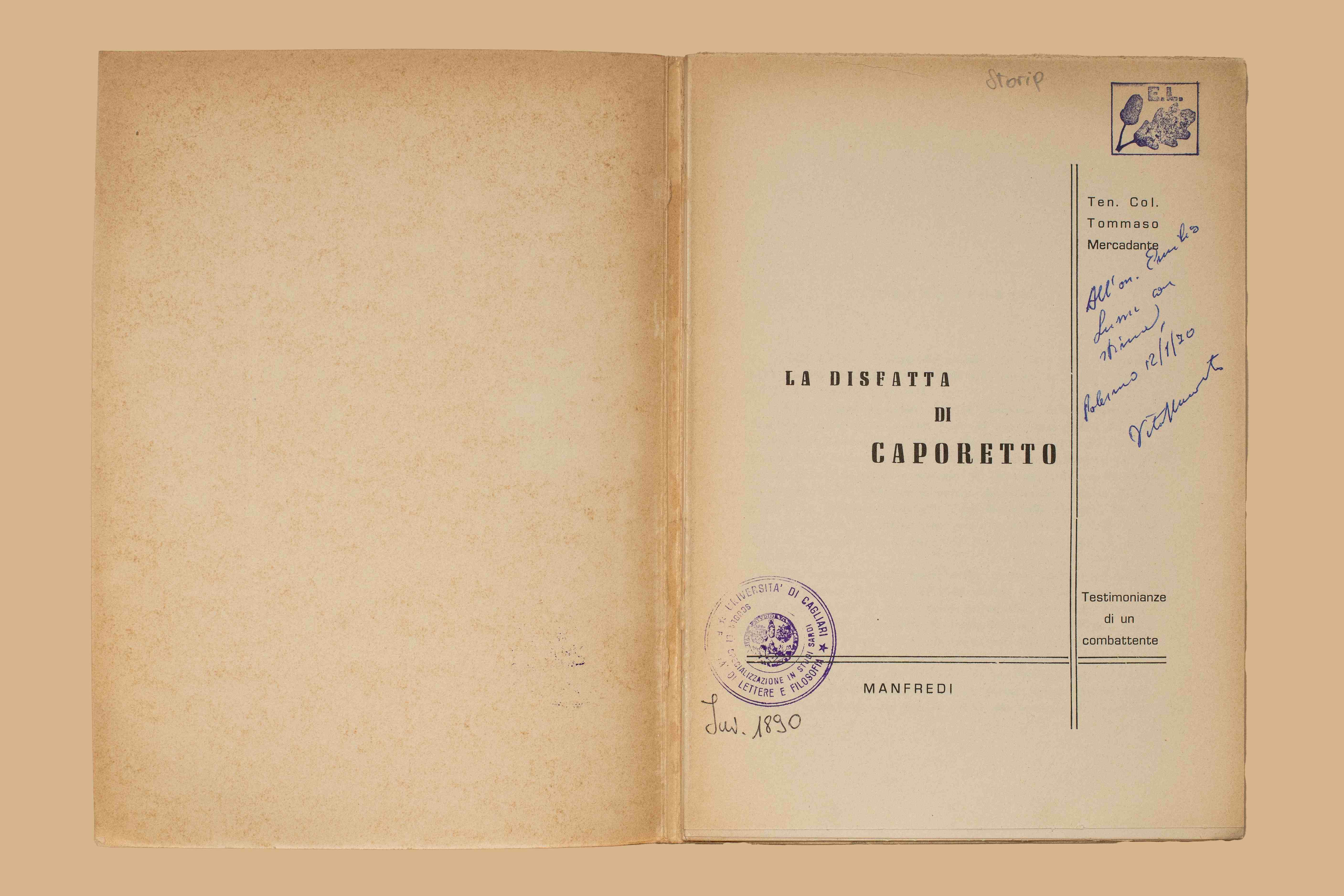 - Dedica ms. sul front. “All’On. Emilio Lussu con stima, Palermo, 12/1/70 Vito Mercadante”.