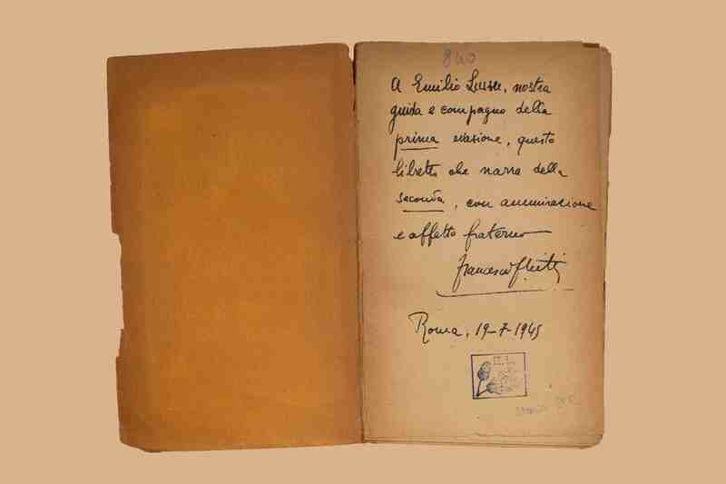 Note: Nella p. che precedei il front. "A Emilio Lussu, nostra guida e compagno della prima (sottolineato) evasione, questo libretto che narra della (sottolineato) seconda, con ammirazione e affetto fraterno, Francesco Nitti, Roma 19-7-1945".