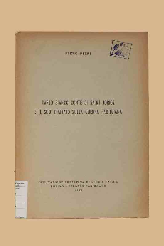 Titolo: Carlo Bianco conte di Saint Jorioz e il suo trattato sulla guerra partigiana / Piero Pieri. - Torino : Deputazione subalpina di storia patria, 1958. - 84 p. ; 24 cm. - Estr. da: Bollettino storico bibliografico subalpino, 55, fasc. 2 (lug./dic. 1957), 56, fasc. 1 (gen./giu. 1958).