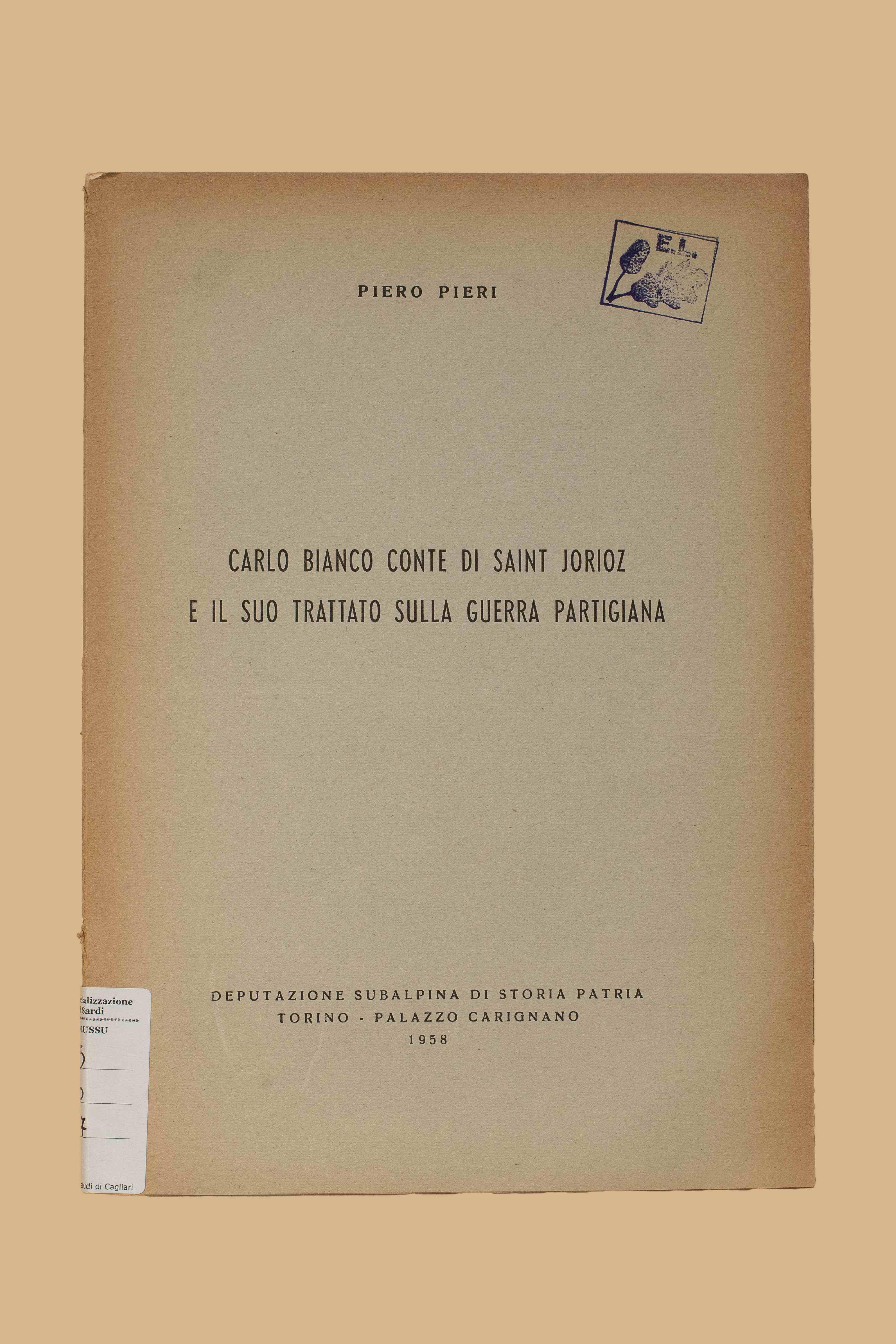 - Carlo Bianco conte di Saint Jorioz e il suo trattato sulla guerra partigiana / Piero Pieri. - Torino : Deputazione subalpina di storia patria, 1958. - 84 p. ; 24 cm. - Estr. da: Bollettino storico bibliografico subalpino, 55, fasc. 2 (lug./dic. 1957), 56, fasc. 1 (gen./giu. 1958).