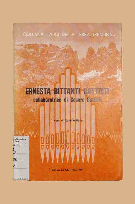 Titolo: Ernesta Bittanti Battisti : collaboratrice di Cesare Battisti / a cura di Camillo Battisti. - Trento : V.D.T.T., 1971. - 124 p. ; 20 illustrazioni ; 17 cm. - (Voci della terra trentina). - Ed. di 1200 esemplari numerati.