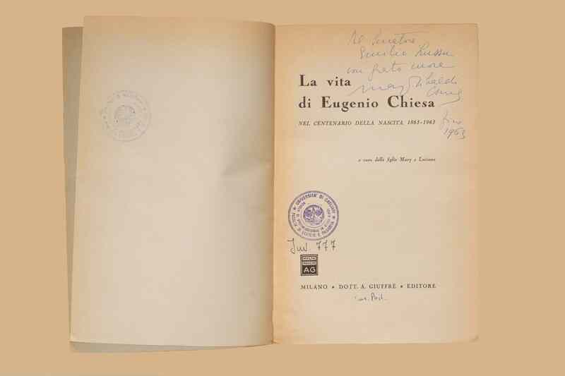Titolo: La vita di Eugenio Chiesa : nel centenario della nascita 1863-1963 / a cura delle figlie Mary e Luciana. - Milano : A. Giuffré, [1964?]. - 516 p., [8] c. di tav. : ill., 1 ritr. ; 23 cm.