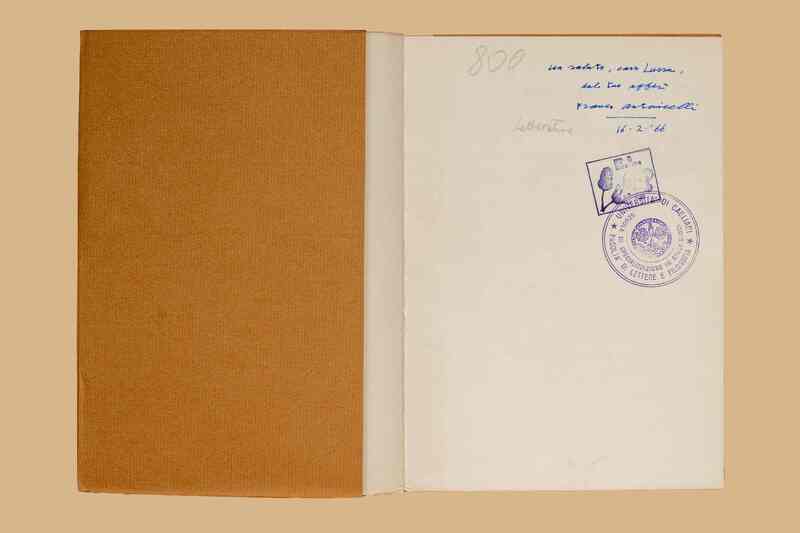 - Nell'occhietto dedica, ms. “Un saluto, caro Lussu da tuo affezionatissimo Franco Antonicelli, 16.2.'66”. Biglietto del Centro Studi Pero Gobetti con ms. “tanti cari saluti da tutti noi. Carla Gobetti”.