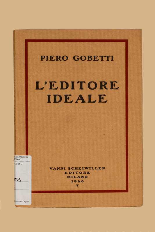- L'editore ideale : frammenti autobiografici con iconografia / Piero Gobetti ; a cura e con prefazione di Franco Antonicelli. - Milano : All'insegna del pesce d'oro, 1966. - 97 p., [17] c. di tav. : ill. ; 18 cm. - (La primula rossa ; 6)