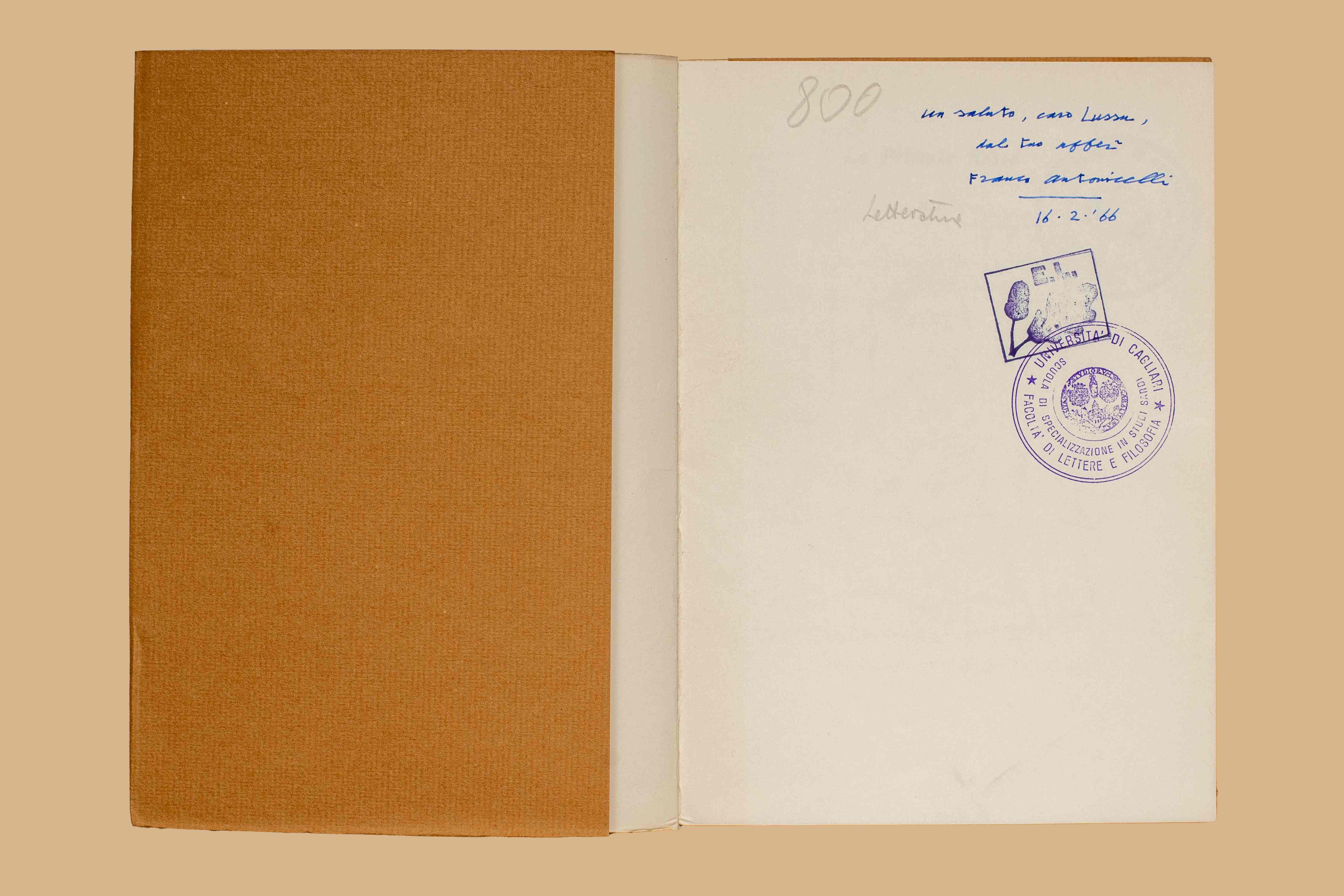 Note: Nell'occhietto dedica, ms. “Un saluto, caro Lussu da tuo affezionatissimo Franco Antonicelli, 16.2.'66”. Biglietto del Centro Studi Pero Gobetti con ms. “tanti cari saluti da tutti noi. Carla Gobetti”.
