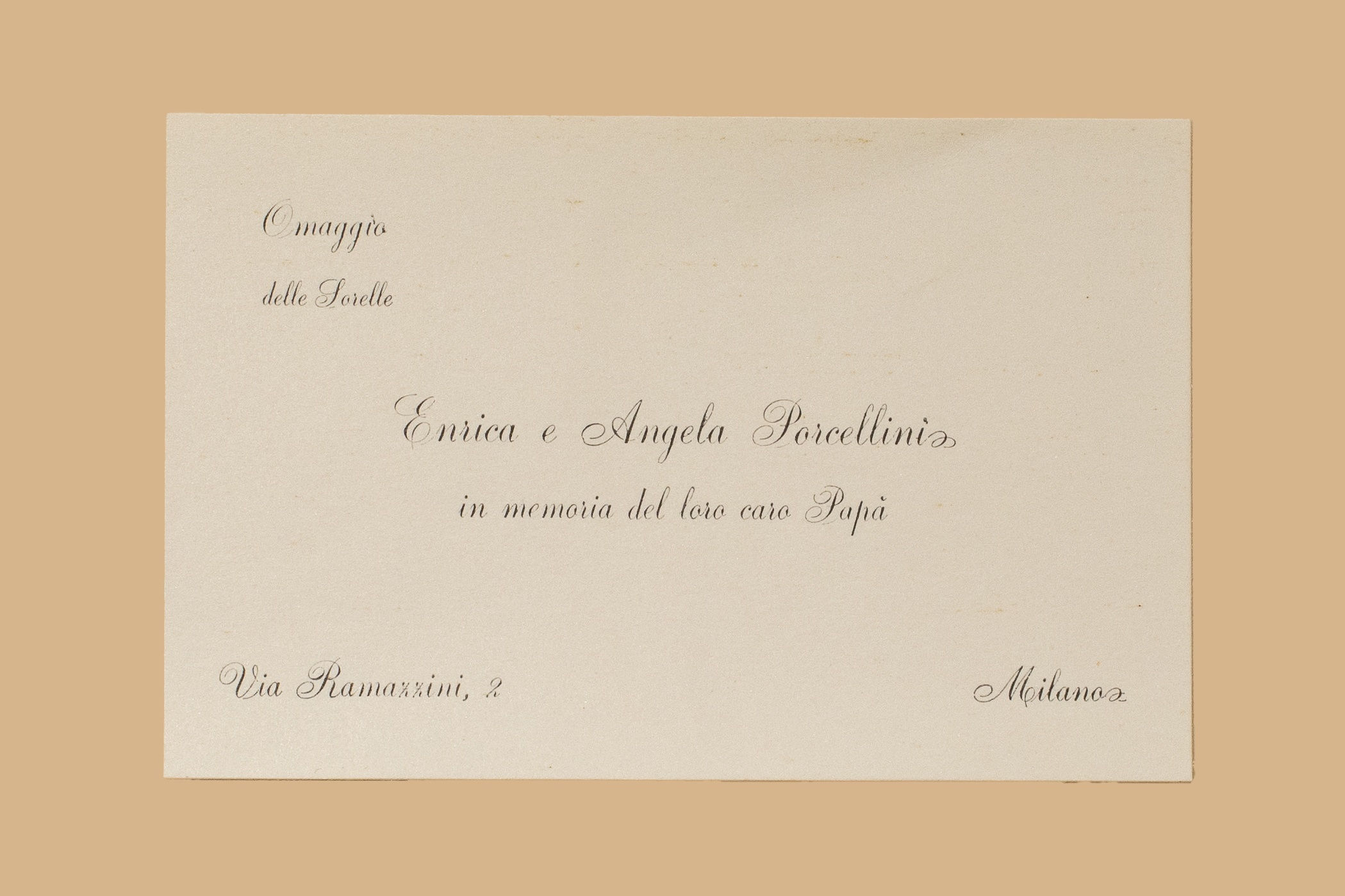 - Biglietto “Enrica e Angela Porcellini in memoria del loro caro papà”.