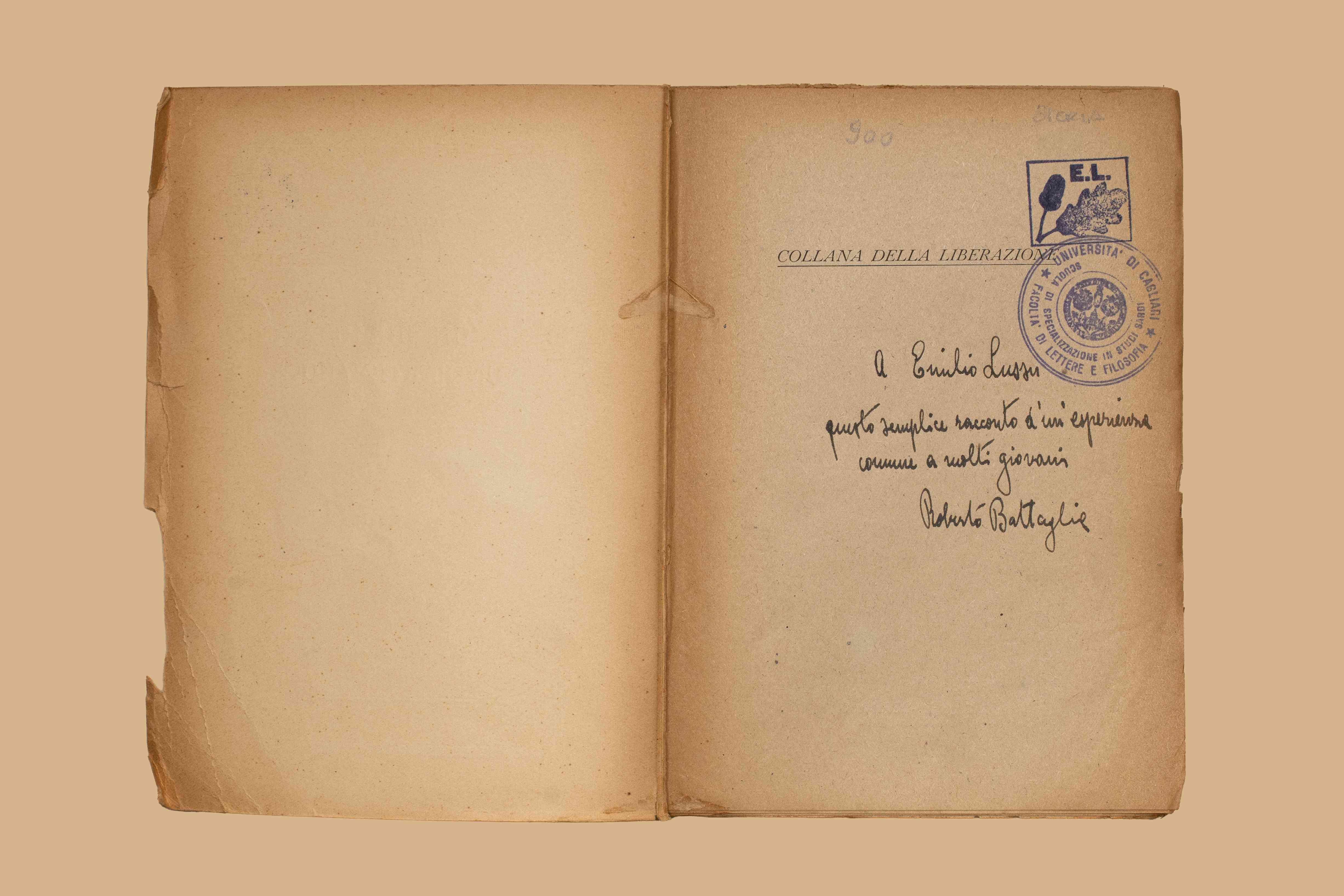 - Diversi segnalibri con appunti mss. che segnalano parti del libro. Un altro appunto ms. cita il Conte Sforza, Nenni, Stalin, Tarchiani ma non sembra collegato al volume su Salvemini. Biglietto da visita dell'Avv. Filippo Satta-Galafrè di Nuoro, accompagnato dalla nota ms. “con affettuosi saluti” e la data “12 ottobre 1963”.