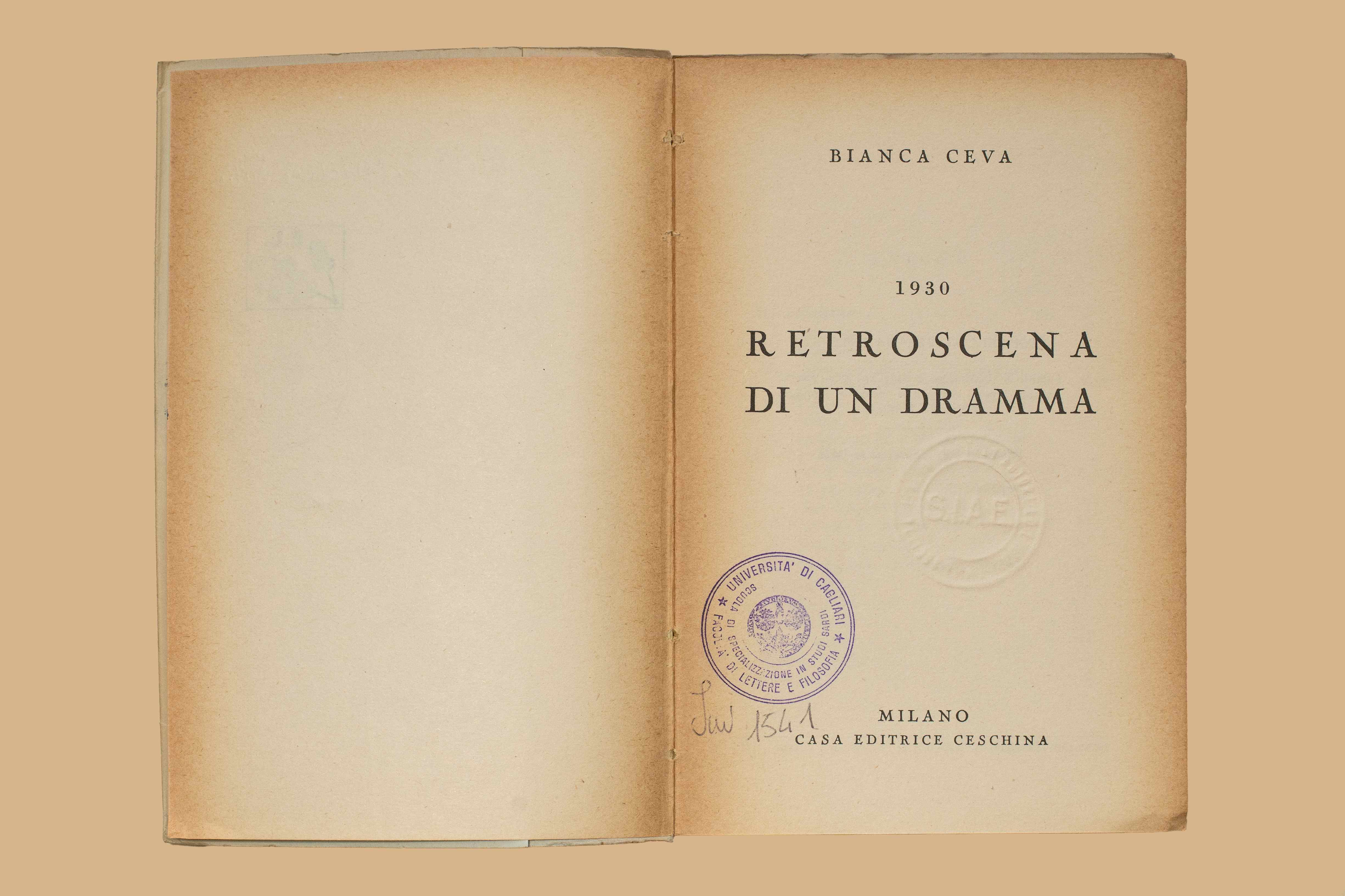 Titolo: Retroscena di un dramma : 1930 / Bianca Ceva. - Milano : Ceschina, 1955. - 159 p. ; 19 cm
