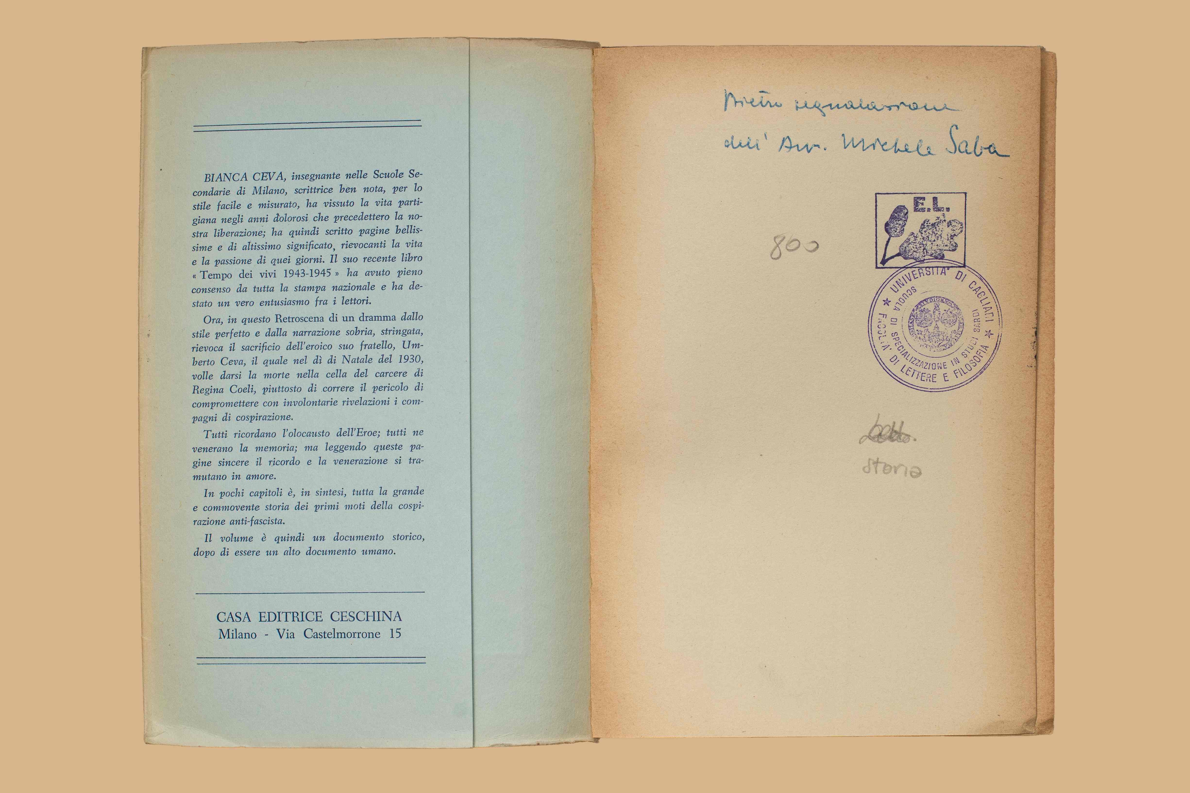 Note: Nell'occhietto ms. “Dietro segnalazione dell'avv. Michele Saba”.
