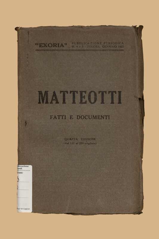 - Matteotti : fatti e documenti. - 3. ed. - Toulouse : Exoria, 1926. - 126 p. ; 20 cm. - (Exoria ; 2-3)