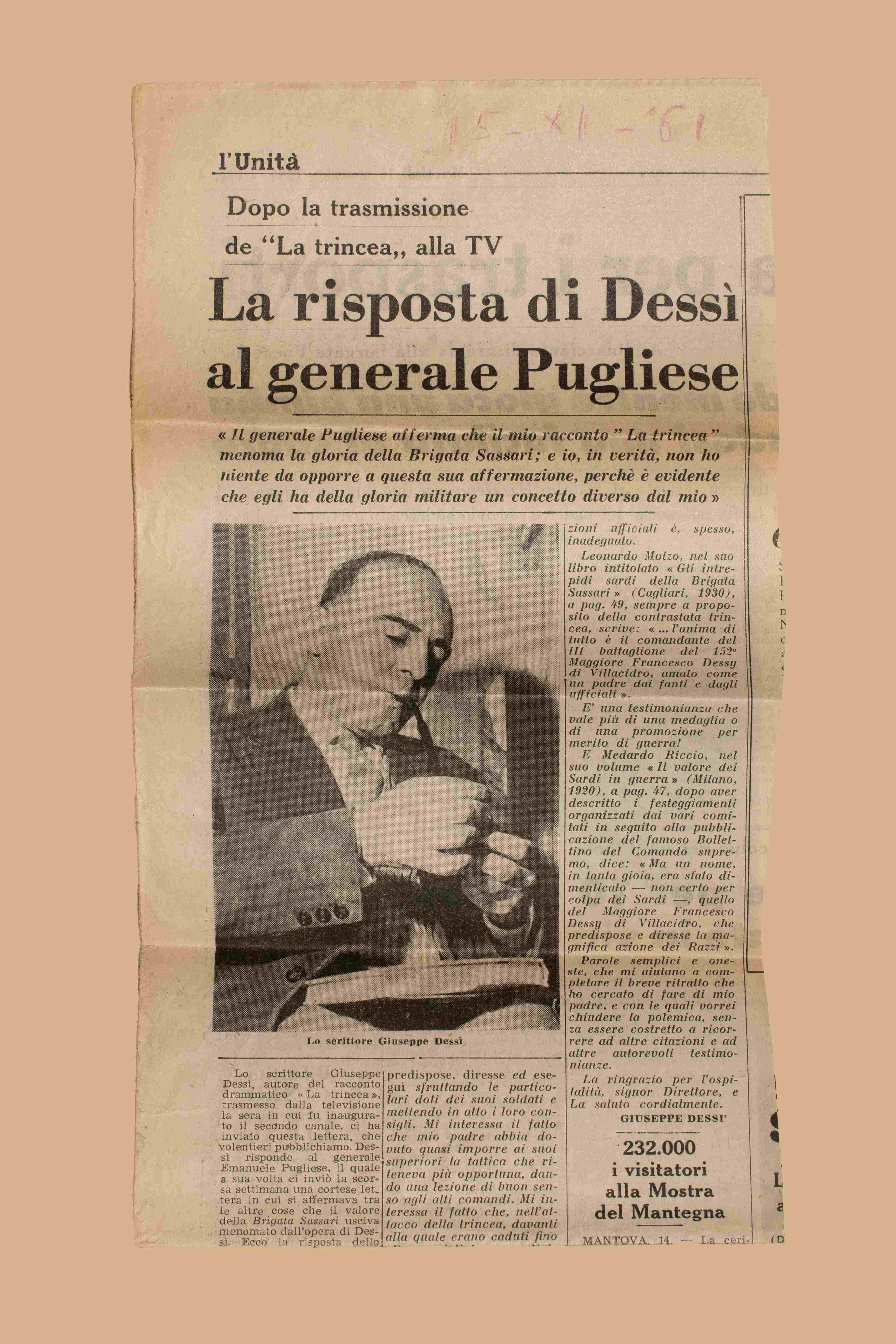 - Lettera del gen. Emanuele Pugliese, dat. Roma, 14 giugno 1946. Documenti e articoli di giornale relativi alla vertenza tra Lussu e il generale, dat. 1947-1962.