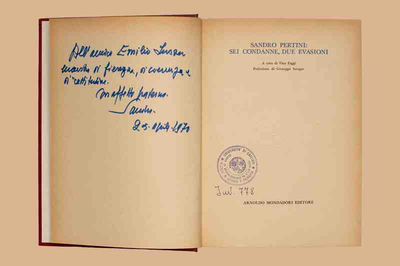 Titolo: Sandro Pertini : sei condanne, due evasioni / a cura di Vico Faggi ; prefazione di Giuseppe Saragat. - Milano : A. Mondadori, 1970. - VIII, 383 p. ; 22 cm.