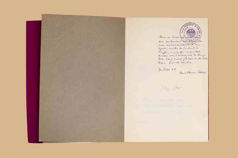 - Dedica dell’a.: “Que ce livre ne vous soit pas seulment signe de ma reconnaissance d’un après-midi animant à Fiuggi, mais qu’il puisse aussi vous révoquer le temps que vous avez passé ensemble avec Silvio Trentin, Juillet 67. Hans Werner Tobler”.