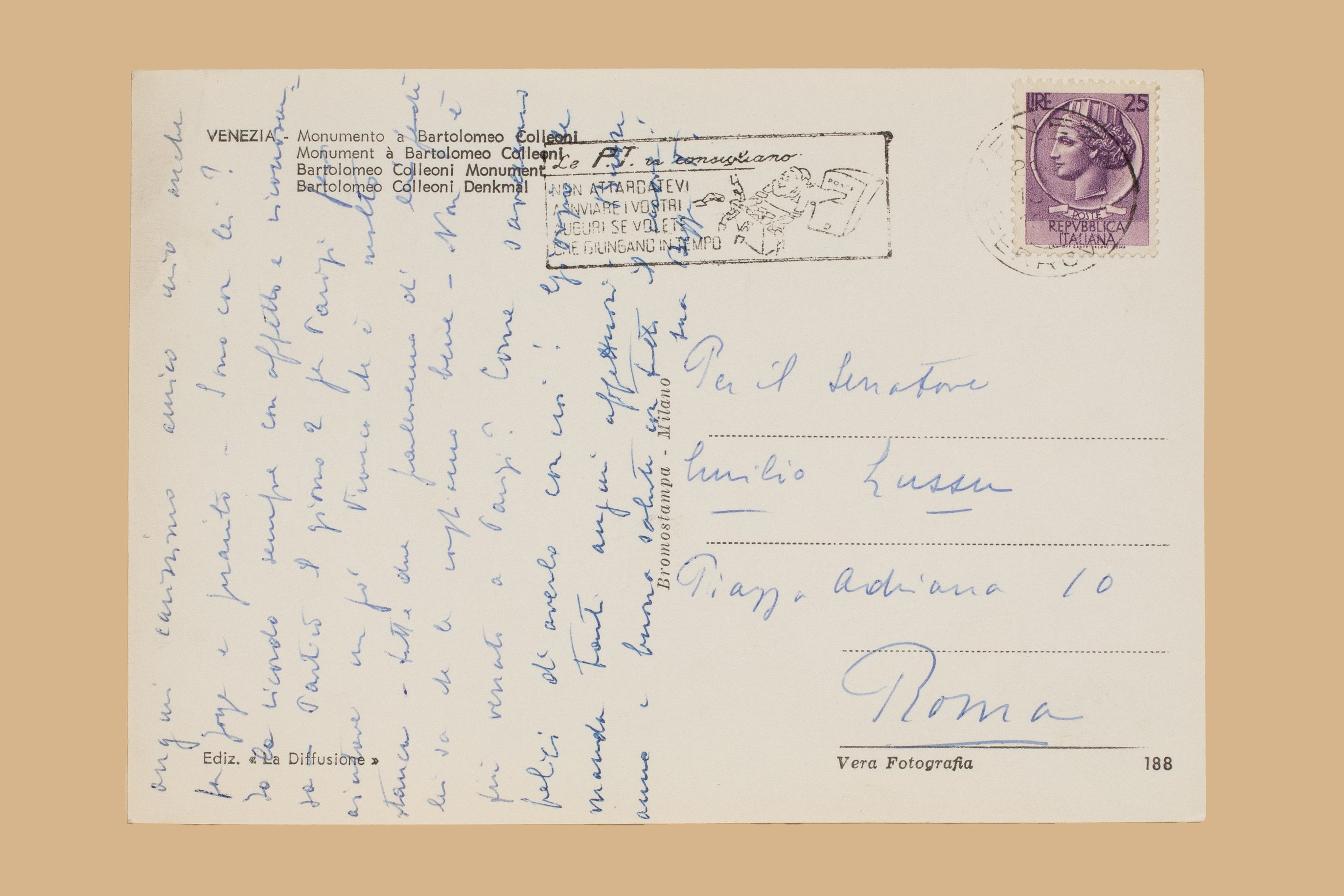 - Diverse sottolineature in Inv: SS 924 ( F3 STO 037) . Cartolina di Beppa T. [Trentin] da Venezia, s.d in Inv: SS 829 (G3 STO 391).