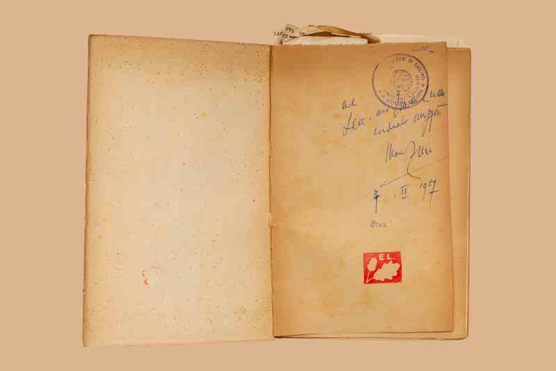 - Dedica ms. “Al sen. Avv. Emilio Lussu, cordiale omaggio, Mario Zino, 7.IV.’47”. Sottolineature e segnalibri con appunti mss.