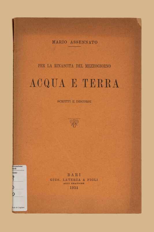 - Acqua e terra : Per la rinascita del Mezzogiorno : scritti e discorsi / Mario Assennato. - Bari : G. Laterza e Figli, 1951. - 94 p. ; 21 cm.