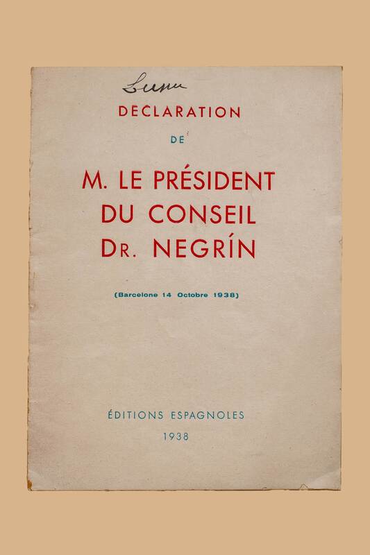 - Déclaration de M. le président du Conseil Dr. Negrín : Barcelone 14 octobre 1938. – [S.l.] : Éditions Espagnoles, 1938. – 12 p. ; 16 cm.