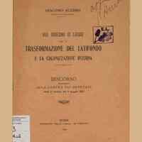 I - GEN | 328 : I | ACESul disegno di legge per la trasformazione del latifondo e la colonizzazione interna : discorso pronunciato alla Camera dei Deputati nella 2. tornata del 6 maggio 1922 / Giacomo Acerbo. - Roma : Tipografia della Camera dei Deputati, 1922. - 16 p. ; 23 cmSulla cop. ms. “Aff. G. Acerbo”- I - GEN | 945 : V.4 | ACE | 1Il fascismo nel primo anno di governo : discorso pronunciato nel Teatro comunale di Bologna il 29 ottobre 1923 per il primo anniversario della marcia su Roma / Giacomo Acerbo. - Roma : Berlutti, [1923?]. - 40 p., [1] c. di tav. : ill. ; 21 cm.