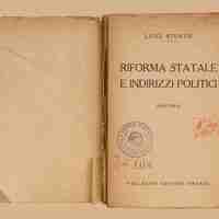 I - GEN | 324.2 : I | STURiforma statale e indirizzi politici : discorsi / Luigi Sturzo. - Firenze : Vallecchi, 1923. - 333 p. ; 20 cm. - (Uomini e idee)Nell’occhietto ms. “E. Lussu, 1925”. Sottolineature. All'interno cartolina di [Luciano?] Granzotto Basso, dat. Feltre 15.9.64".- I - GEN | 324.2 : III | ANSLa riforma costituzionale e la riforma elettorale : (note di critica repubblicana) / Carlo Francesco Ansaldi. - Roma : Libreria politica moderna, 1923. - 34 p. ; 19 cm.