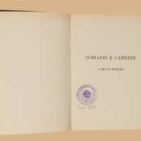 I - GEN | 850 : II | MISSchiaffi e carezze / di Bruno Misefari. - Roma : Morara, 1969. - 122 p. : 1 ritr. : ill. ; 22 cm.Nell'occhietto tassello di carta incollato con nota ds. "… alta poesia sociale e umana che per amore sferza vili, impostori, tiranni. Francesco Conci". Dopo il frontespizio fotografia dell’autore con una dedica ms. dat. Roma 30.3.70 “Forse - Joyce Lussu - troverà qualche verso che vorrà leggere due volte (quale?). Pia Misefari”. All'interno foglietto ds. contenente la poesia "Son la fontana" di Lorenzo Stecchetti (Olindo Guerrini).